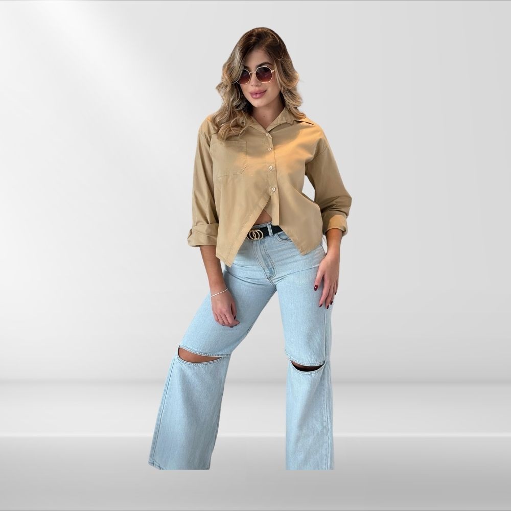 Esta camisa es perfecta para combinar con tus pantalones o faldas favoritas, creando un look tanto casual como más formal. ¡Un básico atemporal!